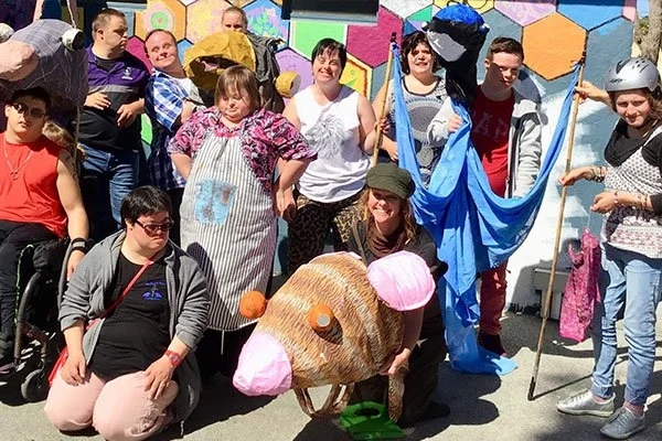 Artzability provides a program for young adults with disabilities, focusing on both performing and visual arts. The program is facilitated by an arts worker who accesses local artists to provide a varied program for all the participants. The mural at the Zone Room in Margaret River was facilitated by local artist Sky River, who was coordinating the group at the time.