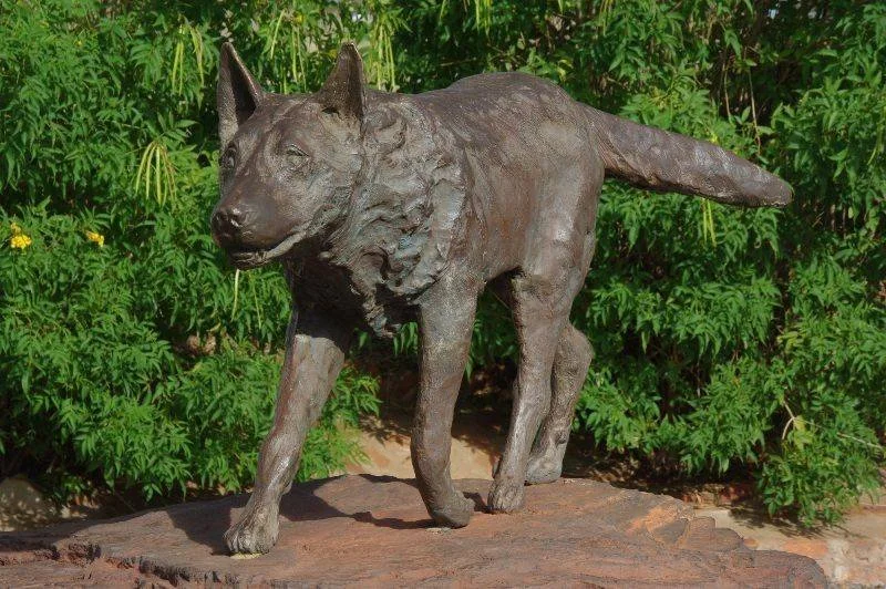 Meri Forrest is a Perth-based sculptress who is known for creating the Red Dog statue in Dampier, Western Australia. She donated her time and skills to create the memorial for Red Dog, a famous kelpie-cross who traveled throughout the Pilbara region. The statue was erected in Dampier, one of the towns Red Dog often visited.