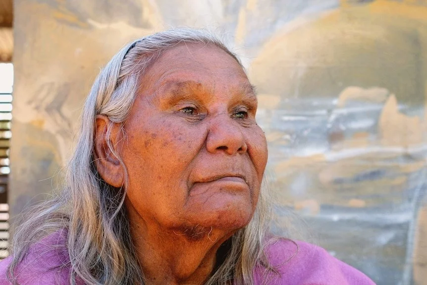 Pansy Hicks is a Senior Ngarluma Elder and Artist who is famous for her Stepping Stones, which is based on "When The World Was Soft" story, passed down from her ancestors. Her country, Roebourne, is situated in WA’s Pilbara area, the Murujuga/the Dampier Archipelago.