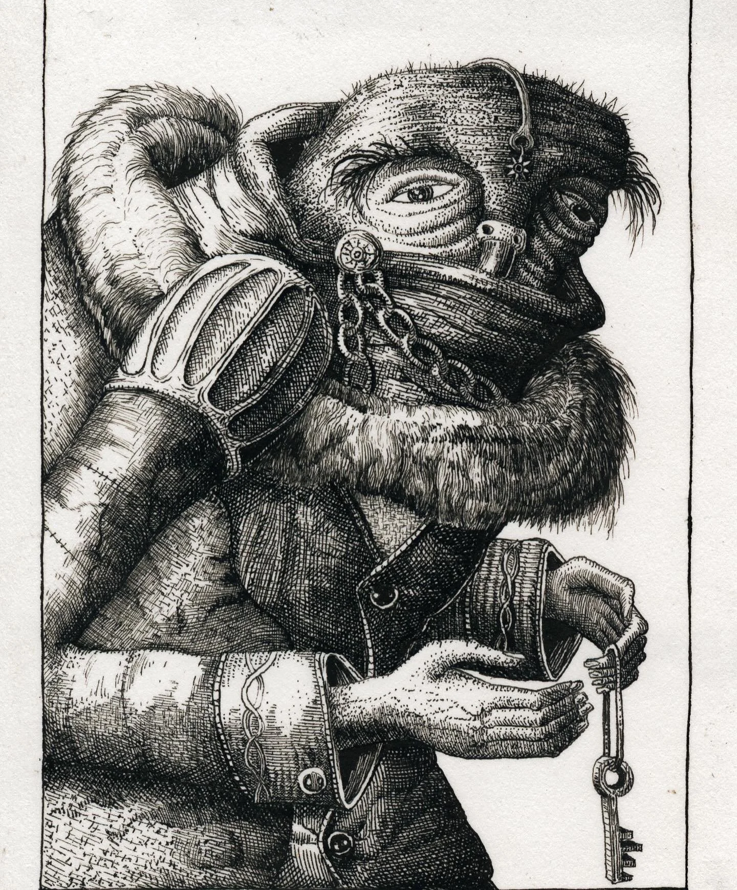 Working mostly in monochrome, his fine technique and intricate detail can be seen as a curiosity cabinet of the mind. Each drawing forms part of a grand narrative that extends worldwide, in countries including Norway, Canada, Switzerland, Sri Lanka, USA, Belgium, Poland, Italy, Slovakia, Spain, Loompa Land and Australia.